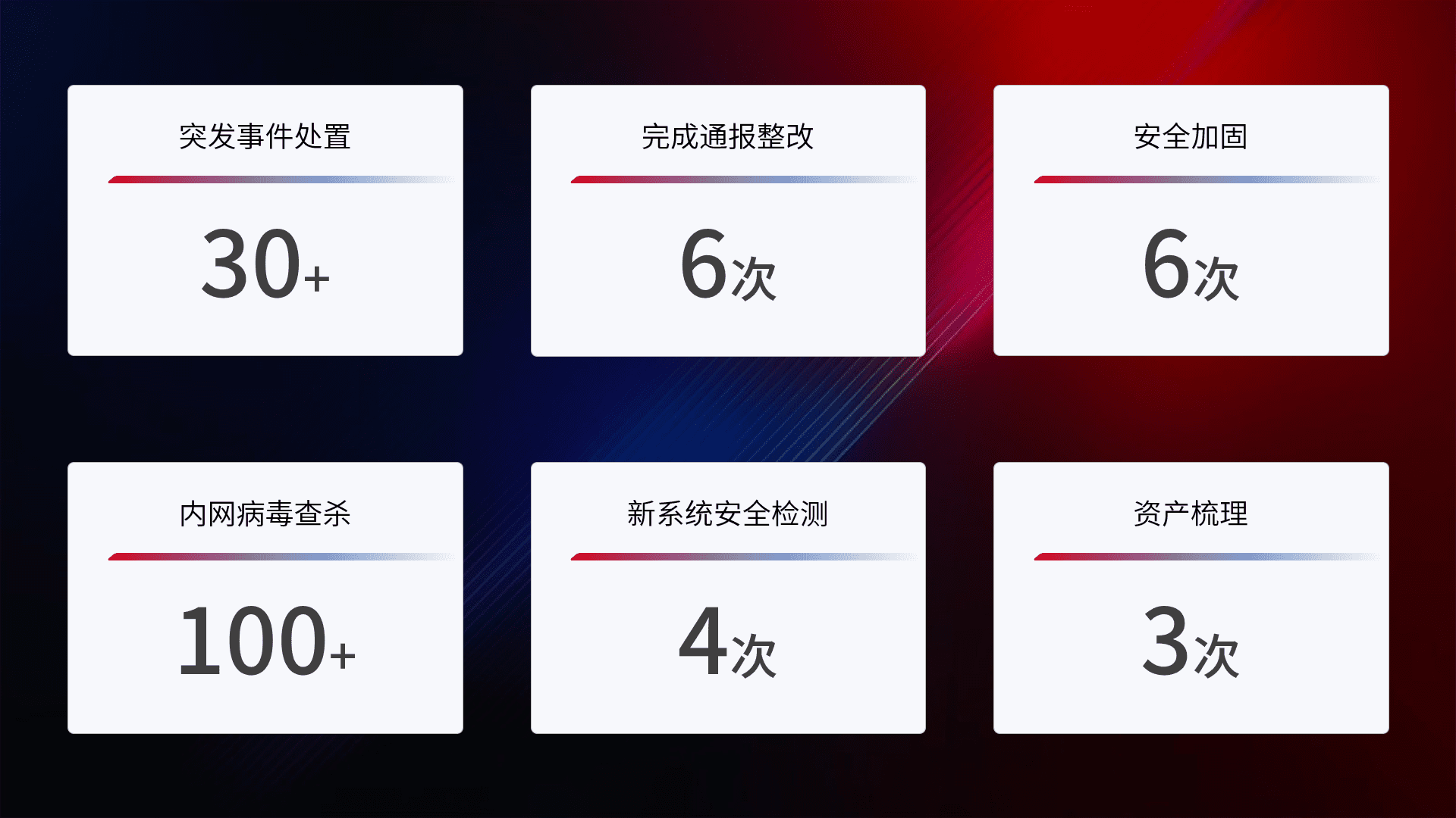 安全水平提升与事件响应:派驻经验丰富的安全工程师,,,,提升医院网络安全防护的整体水平;建立突发网络安全事件的处置流程,,,提高响应速度和处置能力。。。。